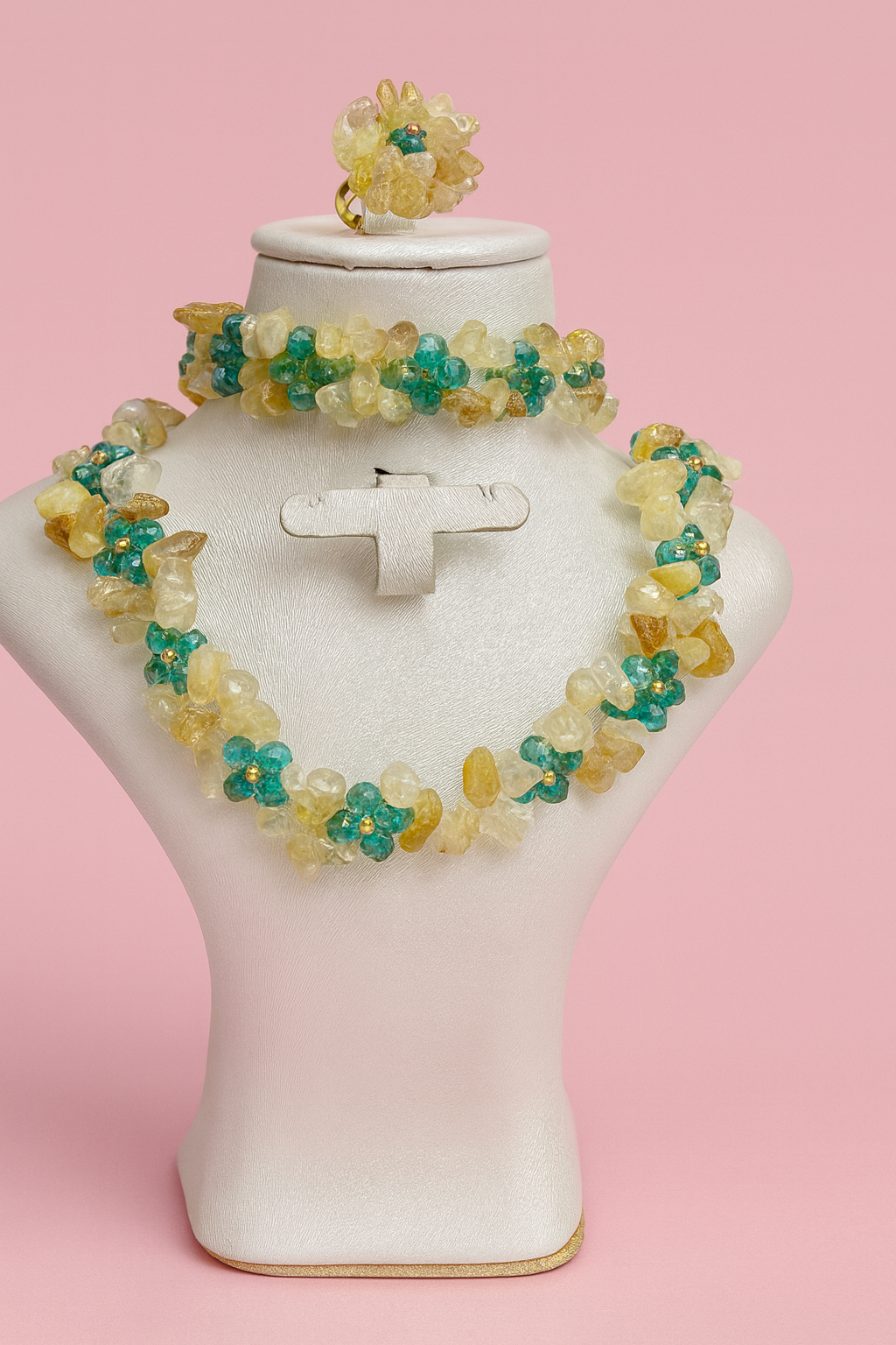 Le collier et le bracelet sont montés en acier chirurgical inoxydable 316L, garantissant une excellente résistance, une brillance durable et un confort optimal au quotidien. La bague assortie vient compléter l’ensemble avec élégance, pour une harmonie parfaite.💕